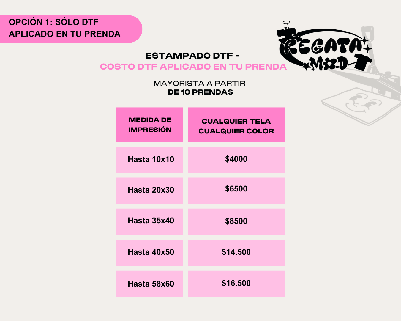 La estampa DTF se cotiza según el tamaño de la estampa.