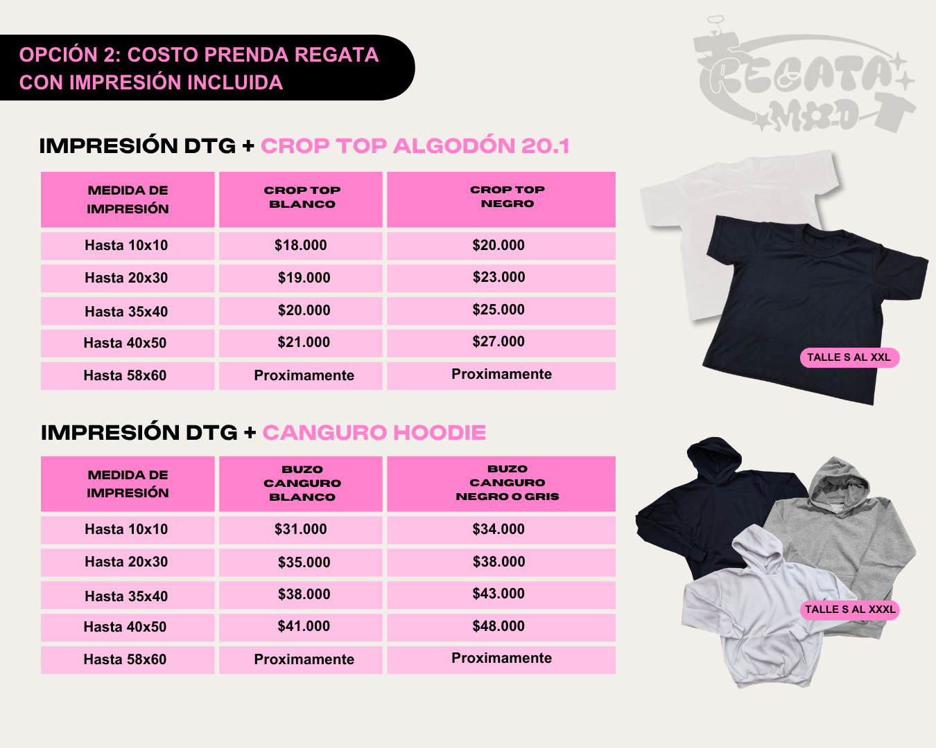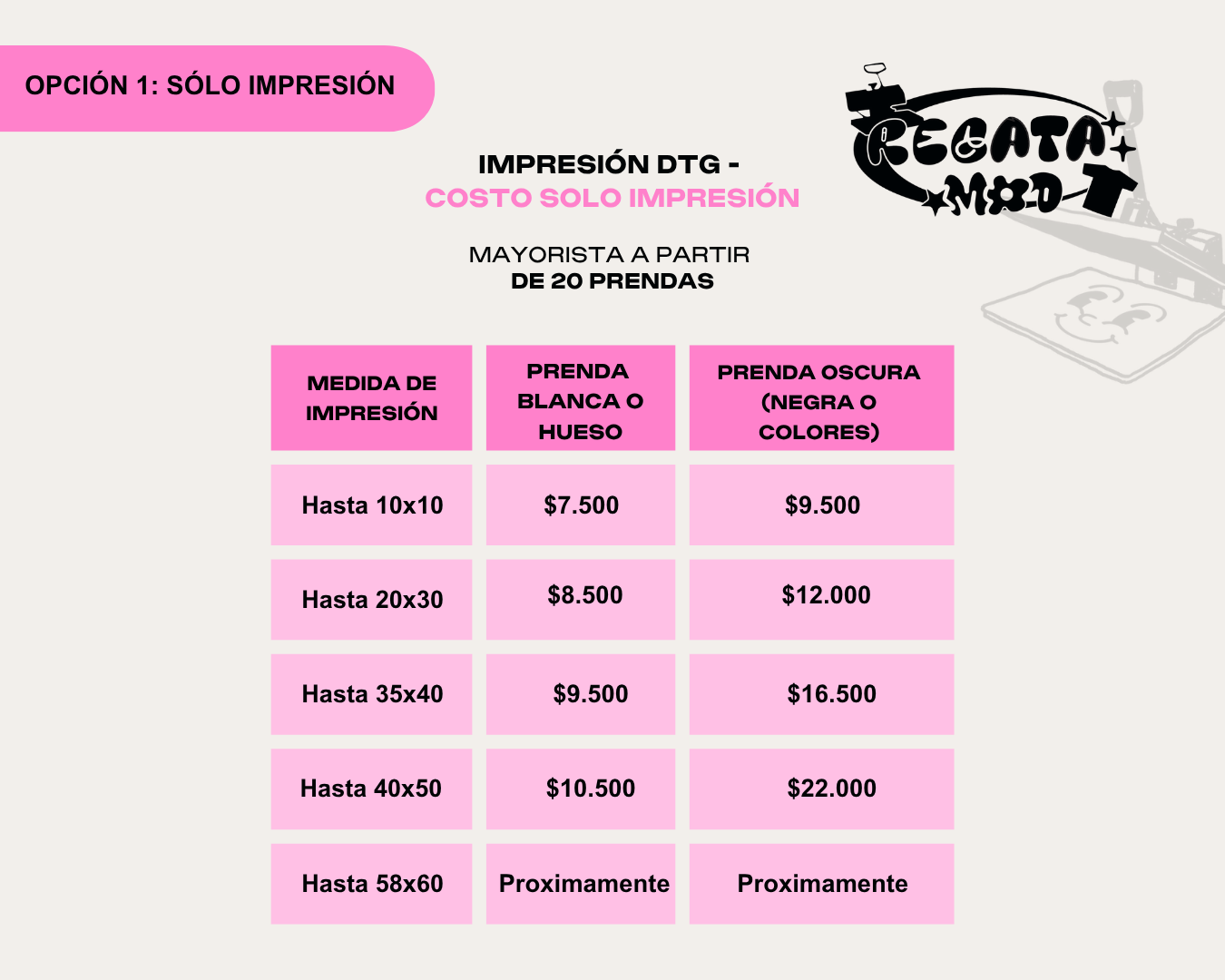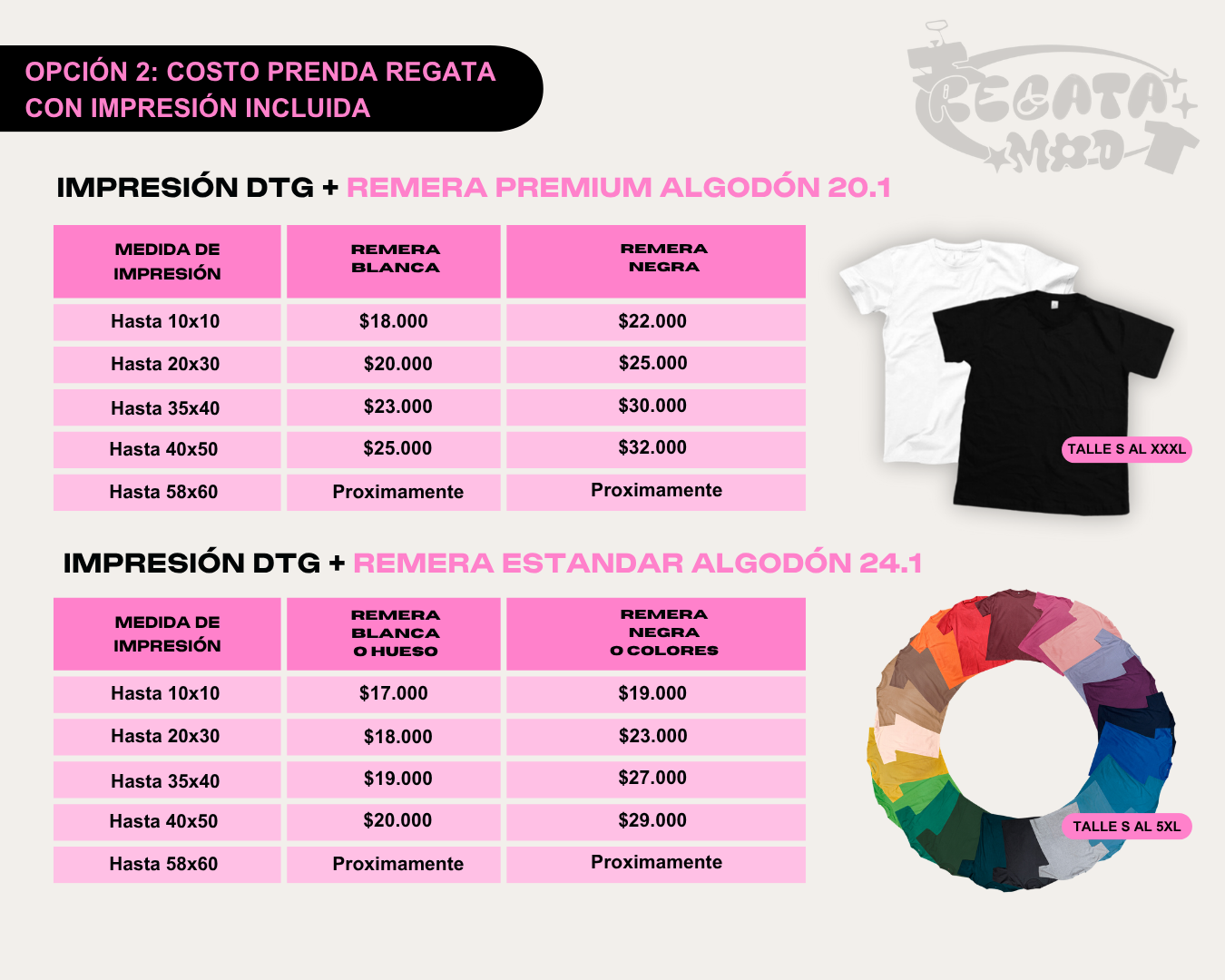 La impresión DTG se cotiza según el tamaño de la estampa.
